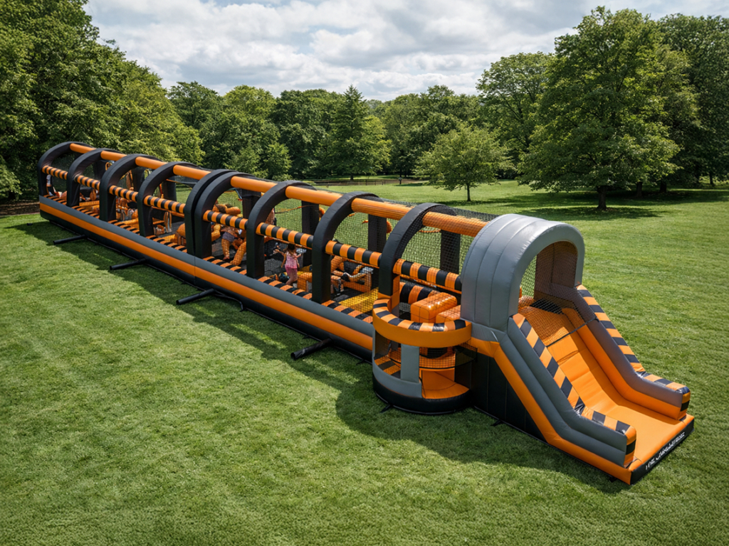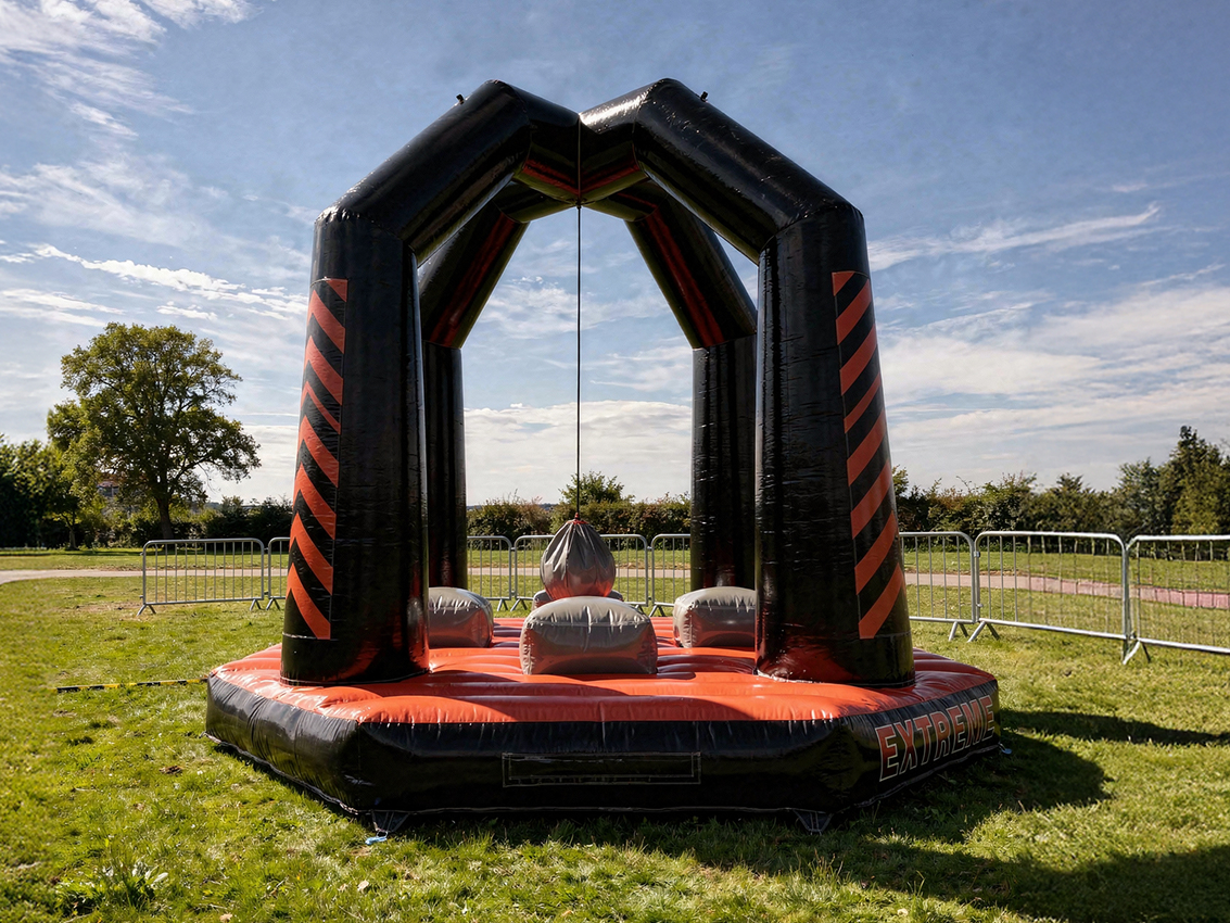 EXTREME ZONE je akční balíček čtyř velkých atrakcí v oranžovo-černém designu, který na první pohled působí dynamicky a výrazně. Celý set je navržený tak, aby zvládl vysokou průchodnost návštěvníků, hodil se pro týmové soutěže i volnou zábavu a stal se nepřehlédnutelnou součástí firemního eventu.