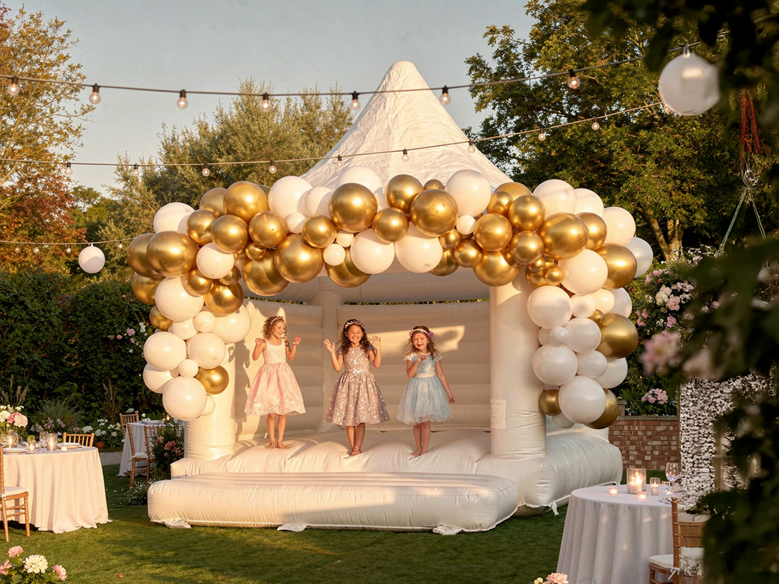 Váš velký den si zaslouží něco výjimečného. Skákací hrad svatební se střechou spojuje eleganci a zábavu v jednom a může zaujmout děti i dospělé. Čistě bílý design s výraznou špičatou střechou a elegantními sloupy ladí se svatební výzdobou, svatebními šaty i fotografiemi. Hrad je vhodný pro venkovní i vnitřní prostory, pokud je k dispozici dostatečná výška.