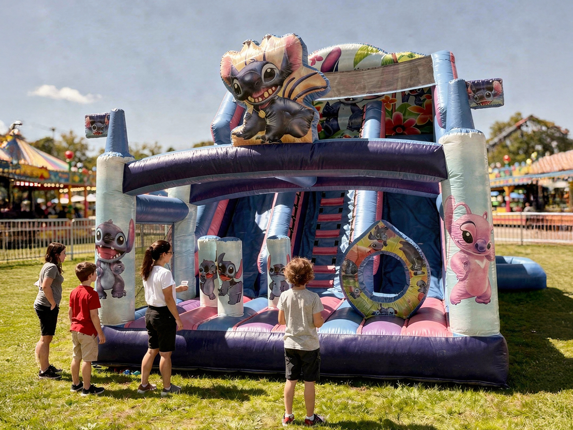 Velká skluzavka s oblíbenými postavičkami Stitche a Angel potěší děti, které mají rády svět Lilo & Stitch. Nabízí spoustu zábavy pro menší i větší děti a hodí se především na narozeninové oslavy, rodinné akce a zahradní párty. Atrakce je určena pro děti od 3 do 14 let. Pro instalaci je ideální travnatá rovinná plocha, která umožní snadnější ukotvení.